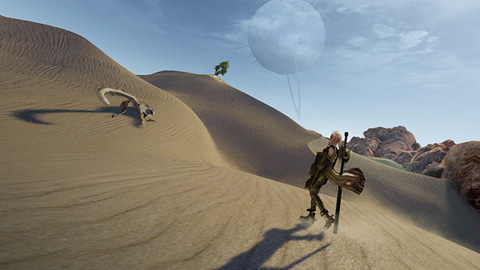 死亡沙丘场景宏大,沙漠中也会出现一些新的哥特风建筑物,还有很多遗迹可以探索。在世界崩坏之前,雷霆展开拯救世界之旅,在遗迹中她遇到了神秘的盗贼团,盗贼团在寻找沉眠在沙漠中的财报,雷霆会把知道的事情告诉他们吗?本作增加很多与场景互动的特殊动作,在沙漠中雷霆可以顺着沙丘的坡滑下前往遗迹进行探索。