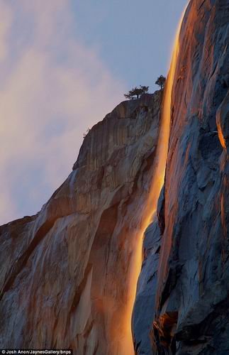 据英国每日邮报报到,你或许会认为这些不可思议的照片是火山熔岩瀑布,但实际上照片中的“火瀑”是一种罕见的自然现象,是从美国约塞米蒂国家公园609米(2000英尺)山上形成的橘色急流瀑布。 ![]() 从美国约塞米蒂国家公园609米山上形成的橘色急流瀑布 ![]() 由于光线照射的微妙和巧合性,照片中的橘色液体实际上仅是马尾瀑布,该现象在每年仅出现几天时间,通常集中在二月份,几种特殊条件具备的情况下才可能发生。 ![]() 马尾瀑布位于内华达山脉,坐落在埃尔特拉多县塔霍湖以西 由于光线照射的微妙和巧合性,照片中的橘色液体实际上仅是马尾瀑布,该现象在每年仅出现几天时间,通常集中在二月份,几种特殊条件具备的情况下才可能发生。 约塞米蒂国家公园跨度3000公里,每年吸引大约350万游客,而火瀑正是吸引游客的亮点之一。大约下午5点半,当日落开始太阳投影变长时,阳光照射在山脉顶部的岩石,这一奇迹般的景色才会出现。 美国旧金山的约翰-阿诺(Josh Anon)在正确的时间和地点拍摄到这一壮观的“火瀑”,他从山谷底部仰视角度进行拍摄,今年28岁的阿诺说:“如果这里有充足的水,且天空十分晴朗,日落将以一定的角度照射到瀑布上使其发光。火瀑形成的条件相对苛刻。” 阿诺描述称,这一景色非常壮观,起初人们仅是看到瀑布,当出现日落时,瀑布被阳光照射呈现金黄色,转眼间该瀑布会变得像熔岩一样。许多人问我是否这是从山顶上倾倒下来的熔岩,也有人问我这种奇妙的瀑布现象是否是真实的,我告诉他们这是水,是完全真实的! 据悉,马尾瀑布位于内华达山脉,坐落在埃尔特拉多县塔霍湖以西。 腾讯科技 |