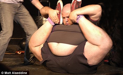 尽管阿拉汀的体形十分肥胖,但是他的身体却比普通人更加灵活、柔韧,能够摆出“相扑”的劈叉,以及接近脱臼的肢体动作。今年30岁的阿拉汀来自加拿大埃德蒙顿市,十几年前他就开始练习扭曲自己的身体,最初他在埃德蒙顿边缘节以街头艺人进行表演。