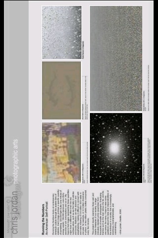 嗯,老大那个只是画而已,并不是真实的图片在缩小,下面我来展示一点真的东西: 微软真的在搞这种技术,叫做Deep Zoom。 如果有iPhone或者iPod touch的可以下载一个叫Seadragon的软件看看。 下面是我的iPod touch截图,因为是横着屏幕截图的,所以下面说的“左上角”之类的位置是指顺时针旋转90度之后的: 这是总图,上面每个部分都可以放很大 这是左上角的图 这是上图的左下角 上图中女人的头部 上图中女人的帽子,可以看到是有什么组成的了吧! 一堆易拉罐Cans Seurat, 2007 712万像素,60×92吋 由106,000个易拉罐组成,相当于美国在30秒内消耗的数量。 总图上面中间的图,可以看到鲨鱼和“水银”两个字 “水银” “水” “水”的中间 上图的中间,这是一堆鲨鱼牙齿Shark Teeth 1,300万像素 由270,000颗鲨鱼牙齿组成,相当于每天用来割鱼翅而被杀死的鲨鱼的牙齿数量。 总图下面的图,因为并没有组成什么图案,就不逐步放大了 放大 放大 是一堆塑料瓶Plastic Bottles, 2007 1,200万象素 由2,000,000个塑料瓶组成,相当于美国在5分钟内消耗的数量。 不要看这些图片像素数不高,但是这里每个像素都是有用的,绝没有淹没于色块中的。不信你拿1,000玩像素的相机照张相看看能放大到这种地步吗? 好吧,我承认这是用来宣传环保的,我当然也要扯一扯——保护环境人人有责! |